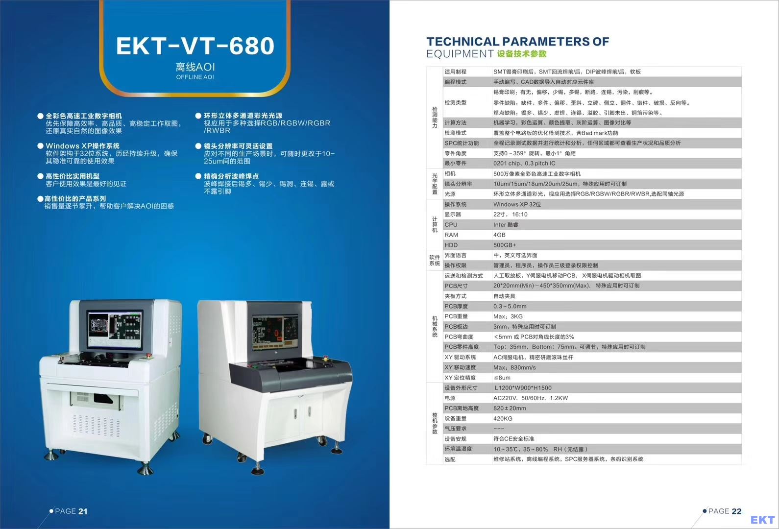 AOI行業(yè)中有一款上市己有10年之久的離線AOI,檢測0402、2010的元器件毫力壓力,軟件非常成熟穩(wěn)定。因為這一款離線AOI銷量最多,歷史悠久。軟件不斷在更新升級優(yōu)化中,用過的客戶都覺得很好,最關(guān)鍵的是:經(jīng)濟(jì)實惠,價格最優(yōu)惠最便宜的一款,最適合做簡單不復(fù)雜的板和一些SMT貼片加工的企業(yè),成本低嘛,給客戶也好看,好接單,所以這一款我們經(jīng)常是供不應(yīng)求的,設(shè)備型號:EKT-VT-680D、前幾年賣的是EKT-VT-680,后面因為相機(jī)的供應(yīng)商此型號的相機(jī)停產(chǎn),我們用了新型號的相機(jī),為了區(qū)分售后服務(wù),升級成為EKT-VT-680H,軟件有些不同,有些改變。大體上是不變的。下面我為大家呈上EKT-VT-680D和EKT-VT-680H的設(shè)備參數(shù),供大家了解。要買這一款一定得提前定貨。