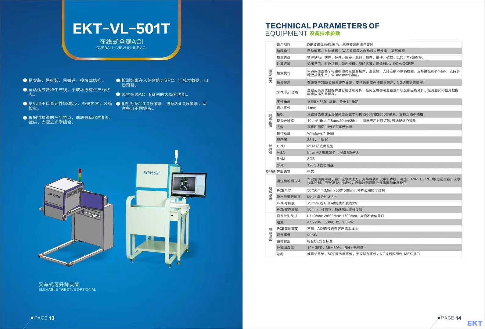 一.EKT-VT-501T插件線AOI設(shè)備技術(shù)參數(shù)
